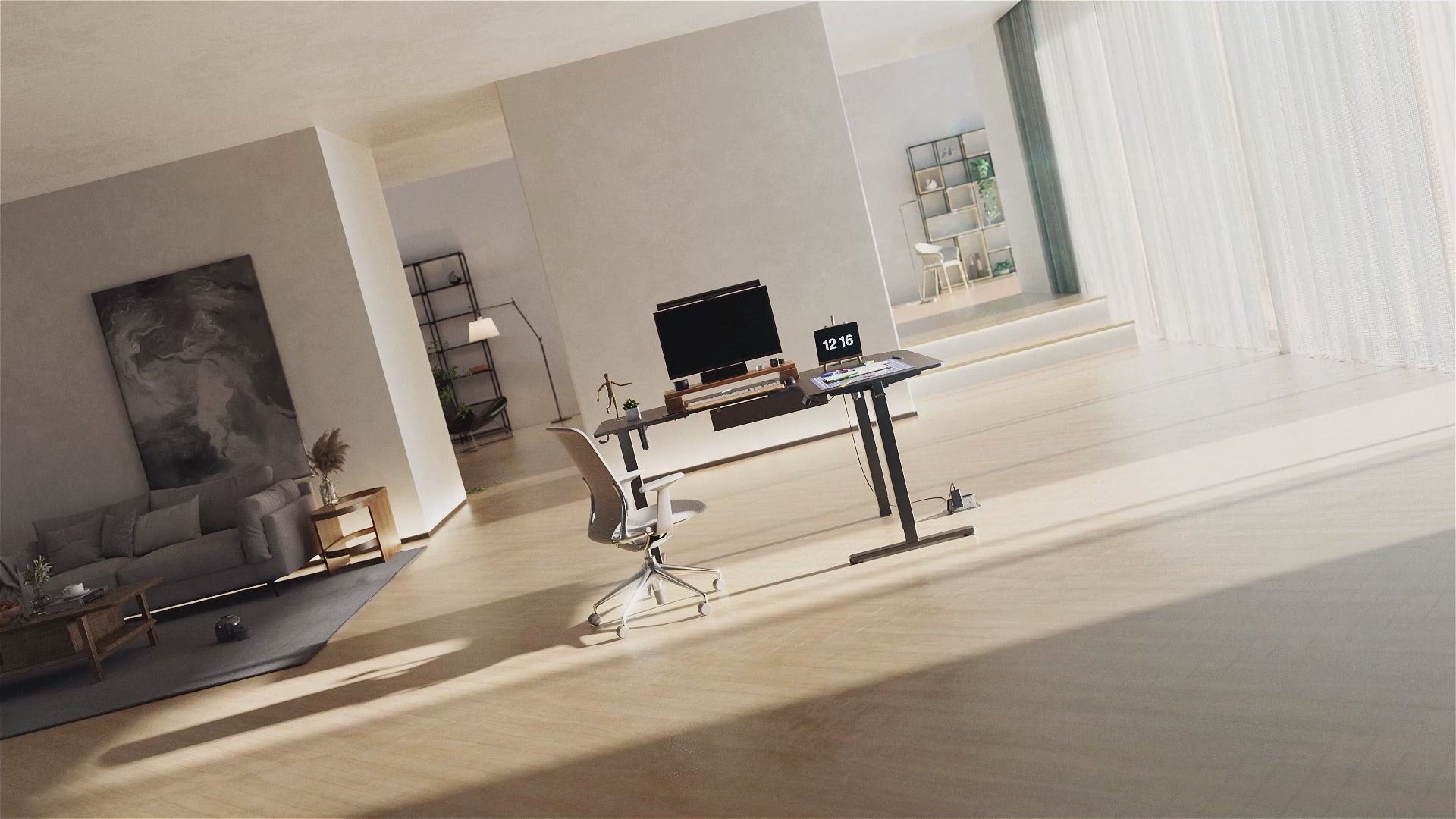 Customize your comfort with programmable height presets and. Built-in cable management trays help maintain a clutter-free desktop, while the premium wooden finish blends modern functionality with a sleek, professional look.