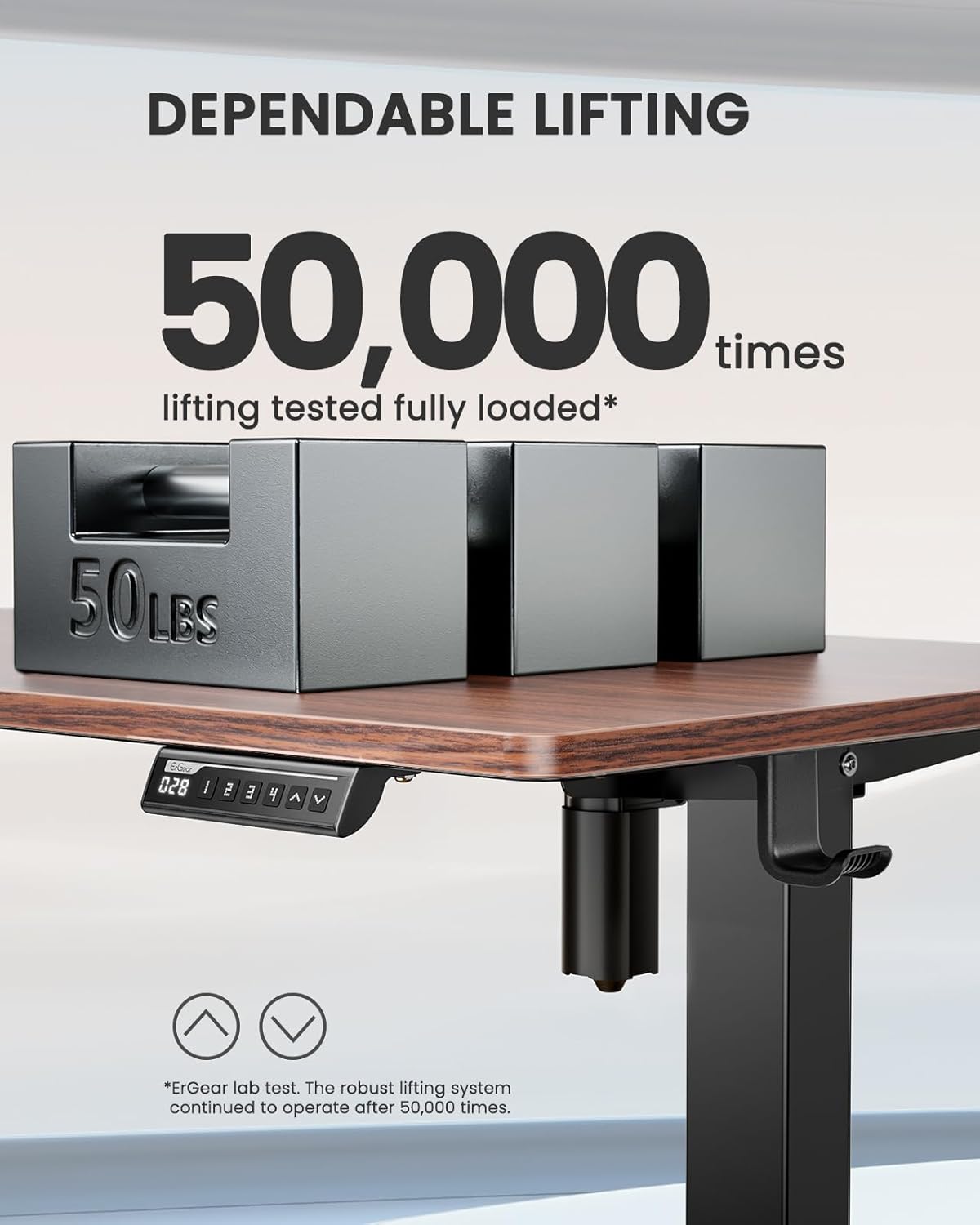 - Reliable & Durable: We thoroughly test our standing desks to ensure reliable long-term performance. This adjustable desk has been lift-tested 50,000 times while fully loaded.