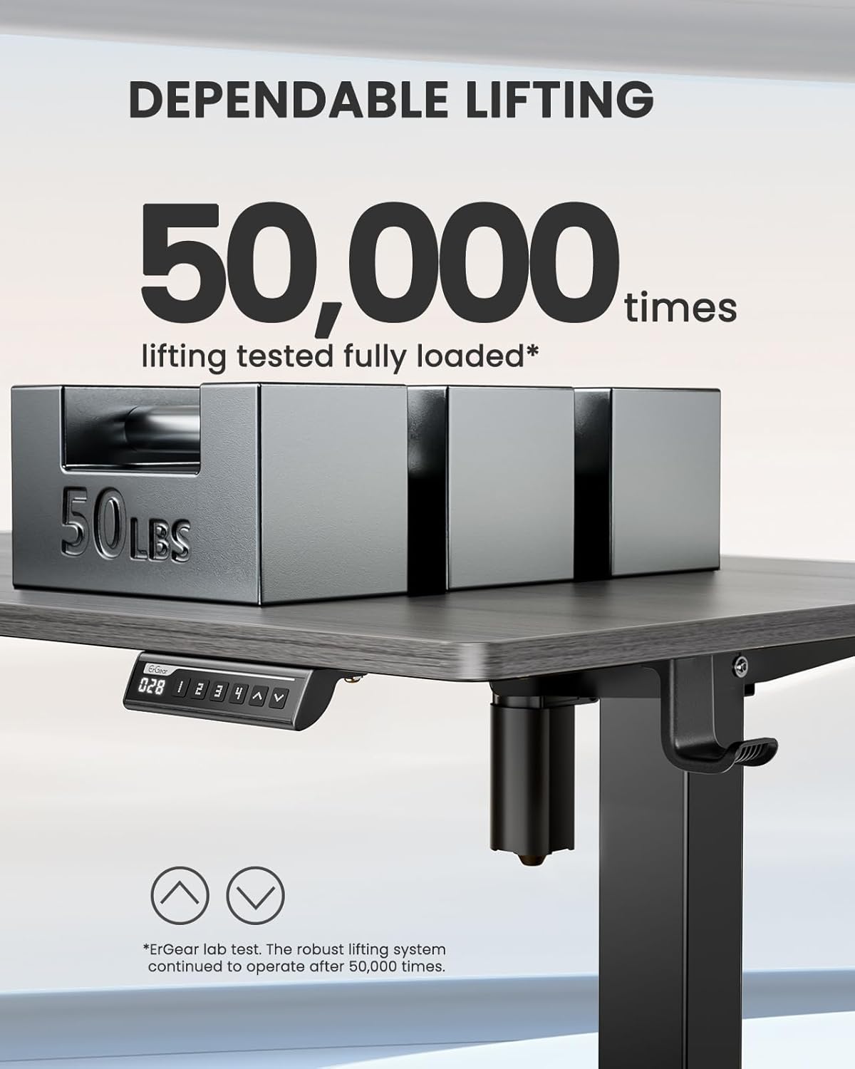 - Reliable & Durable: We thoroughly test our standing desks to ensure reliable long-term performance. This adjustable desk has been lift-tested 50,000 times while fully loaded.