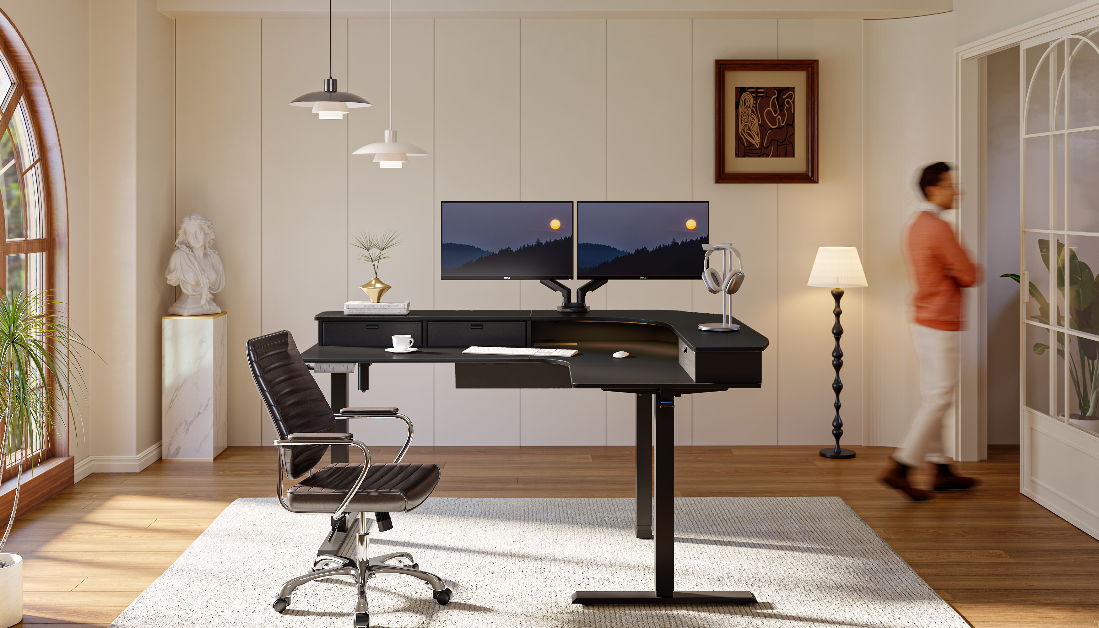 Whole-piece Desktop Standing Desk with 5 Drawers