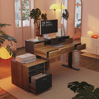 - Organized Drawer Storage: Our standing desk designed with 5 drawers offering significant concealed storage capacity. Perfect for taming clutter – store office supplies or personal items securely and out of sight, maintaining desktop a clean and streamlined aesthetic.