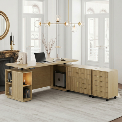 Master your organization with a versatile layout featuring 5 drawers, a side cabinet, and a dedicated CPU compartment. This integrated system ensures all your office essentials and hardware are neatly tucked away yet always within reach.