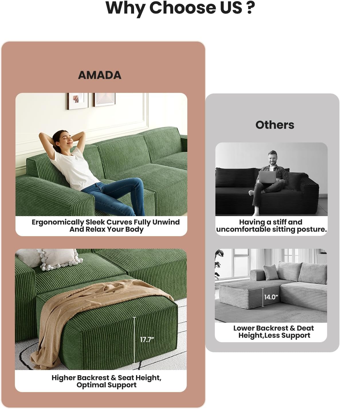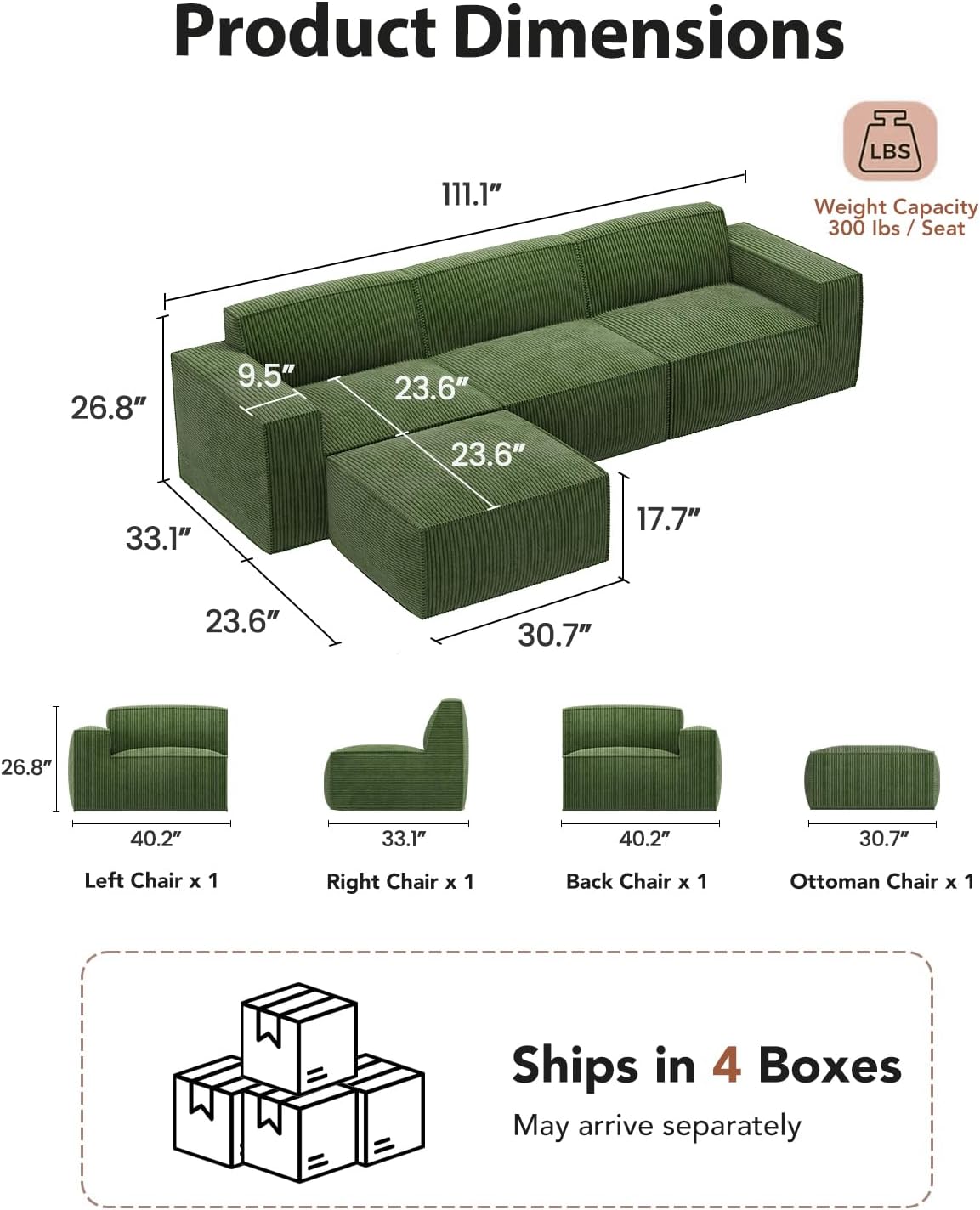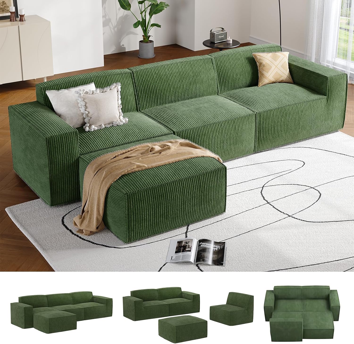 Soft corduroy fabric, deep seating comfort, and tool-free setupโthis modular sectional sofa transforms any space with cozy, customizable elegance.