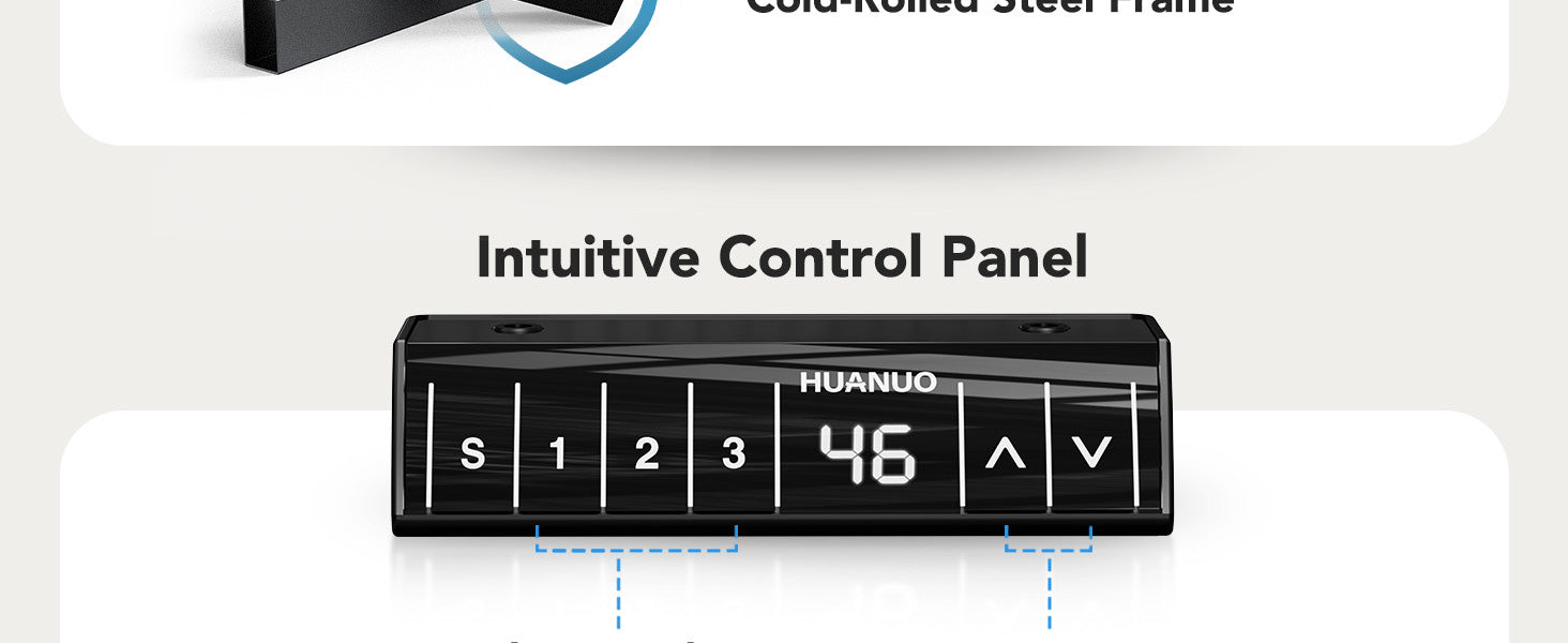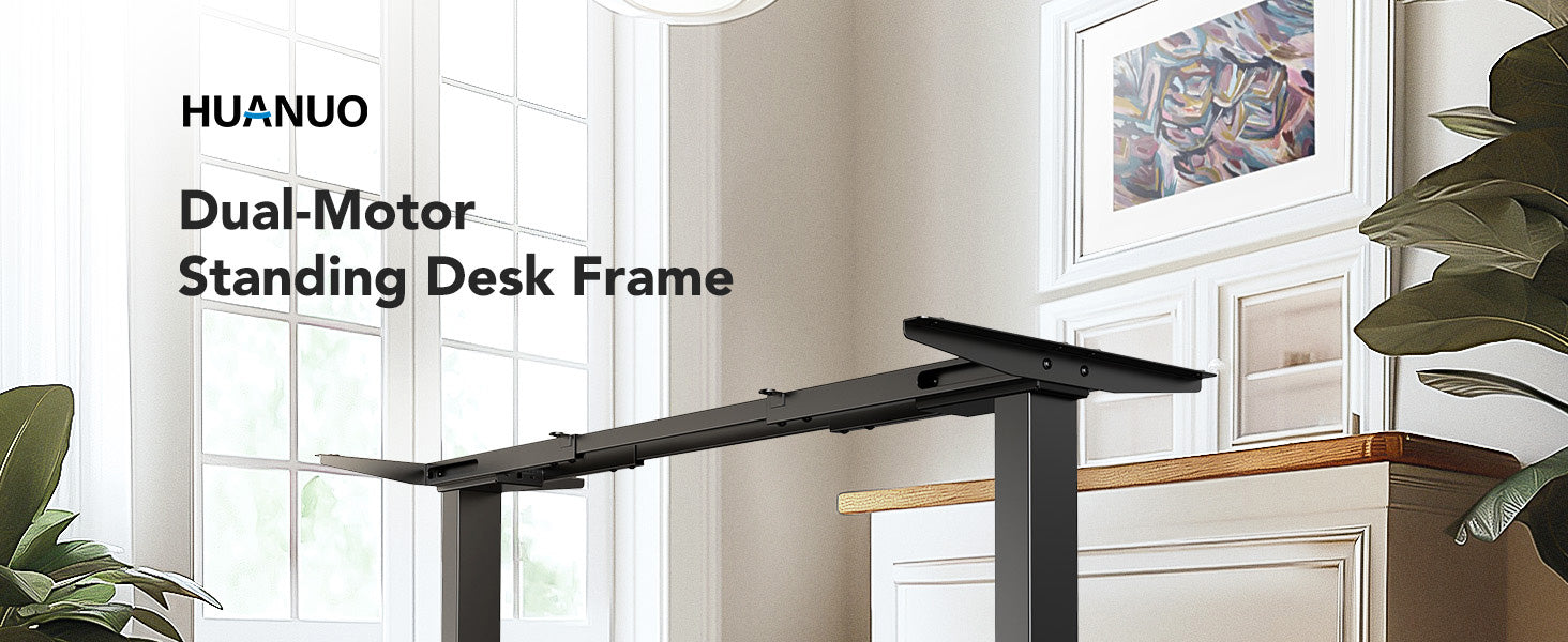 - Dual-Motor Support: Built with dual high-performance motors and durable automotive-grade steel, this HUANUO standing desk frame offers exceptional stability and can support heavier desktops up to 265 lbs. Compared to single-motor frames, it ensures a smooth, sturdy lift and better weight handling.