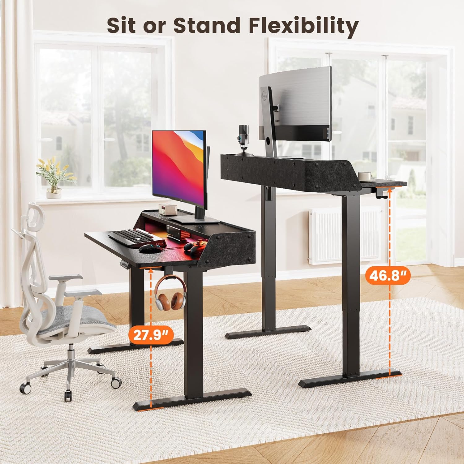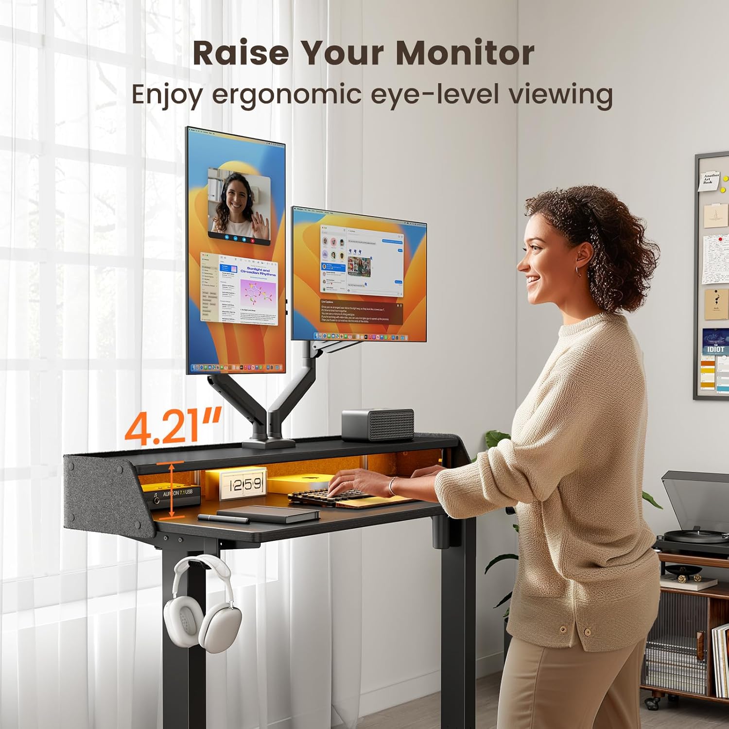 Effortlessly Organize & Elevate Your Workspace – Electric Standing Desk with Dual-Arm Display Stand
