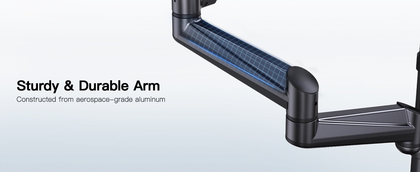 The solid construction and heavy duty base securely hold 3 monitors up to 32”. The gas spring system allows you freely set your monitors to desired height; the full motion adjustments help find optimal angle to work with more comfort.