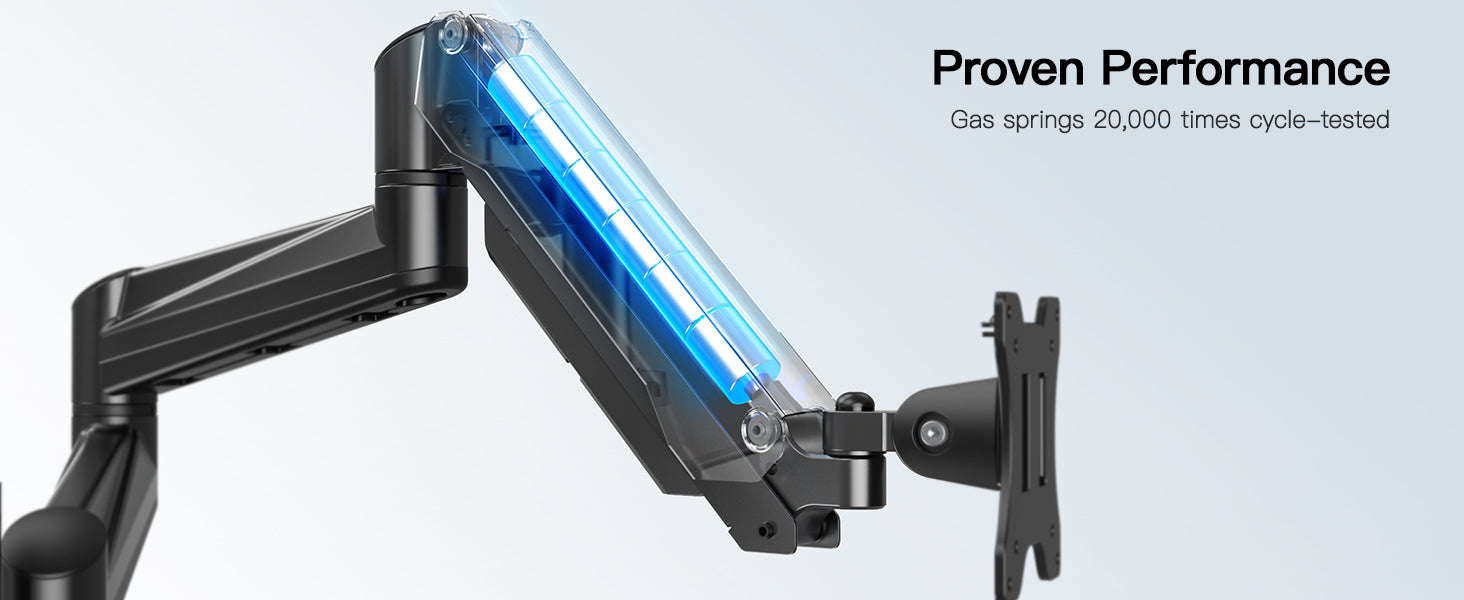 - Customized For Optimal View - The gas spring arms allow easy to adjust monitors swivel, tilt and rotate to find an optimal view angle and position for comfortable work. Freely set your monitors to landscape or portrait mode!