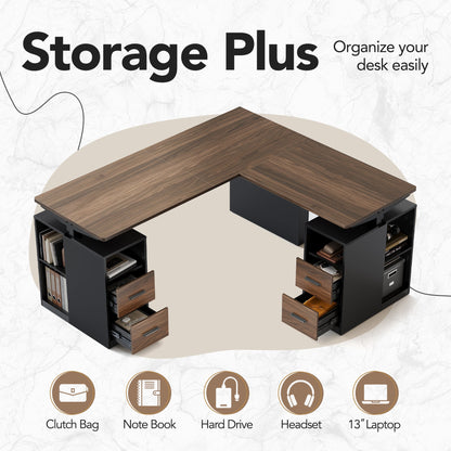 Engineered L-shaped workstation with quiet electric lift and aerospace-grade stability.