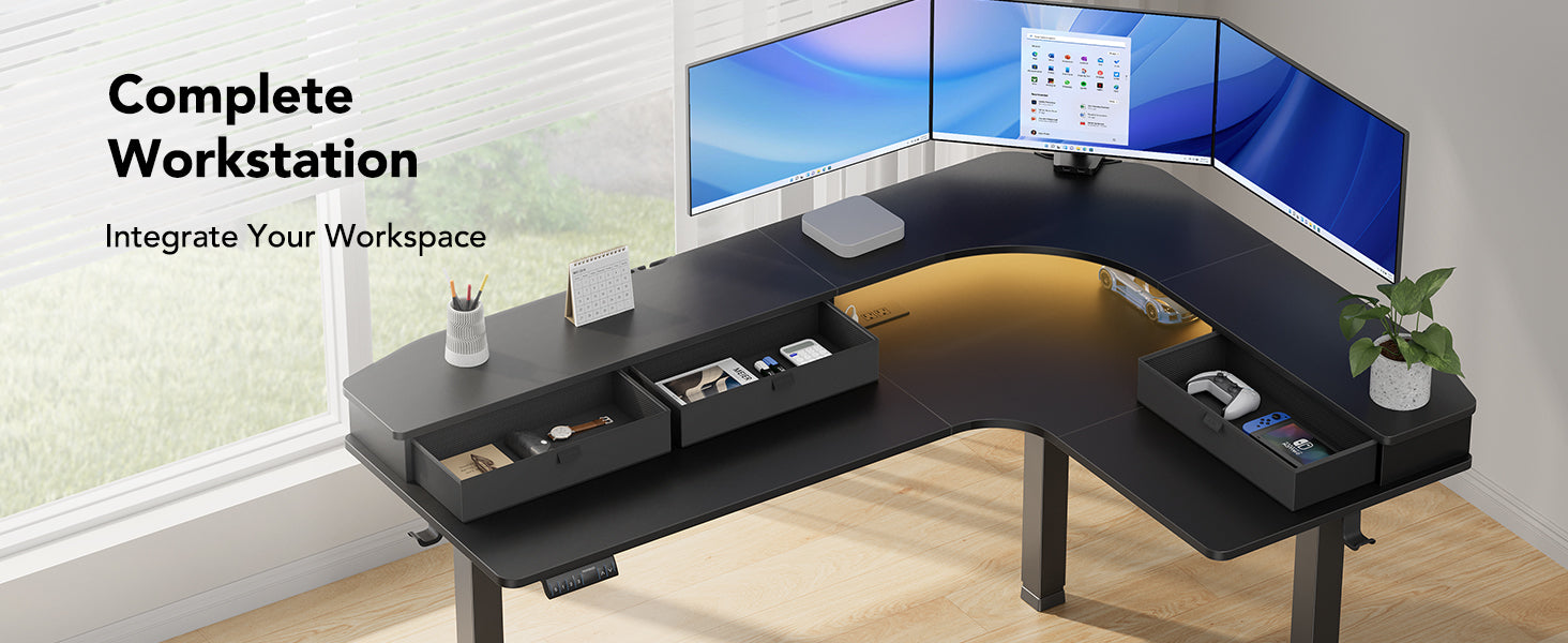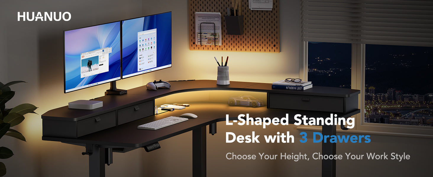 Whether you're working from home or upgrading your office, this L-shaped standing desk offers the perfect balance of ergonomics, space efficiency, and style.