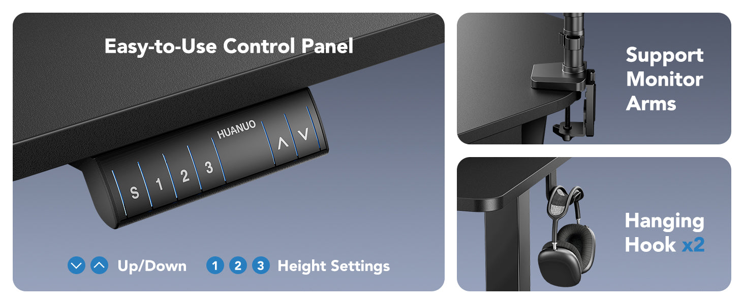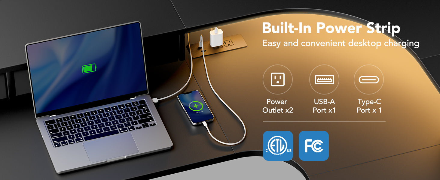 Customize your comfort with programmable height presets and. Built-in cable management trays help maintain a clutter-free desktop, while the premium wooden finish blends modern functionality with a sleek, professional look.