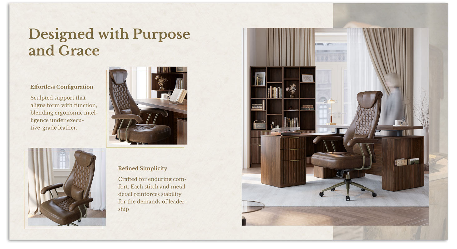 | Ideal For | Executive Offices, Home Workspaces, Gaming Rooms |