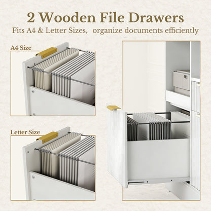 - Dual file drawers: wooden, fit A4 and Letter hanging files for fast document organization.
