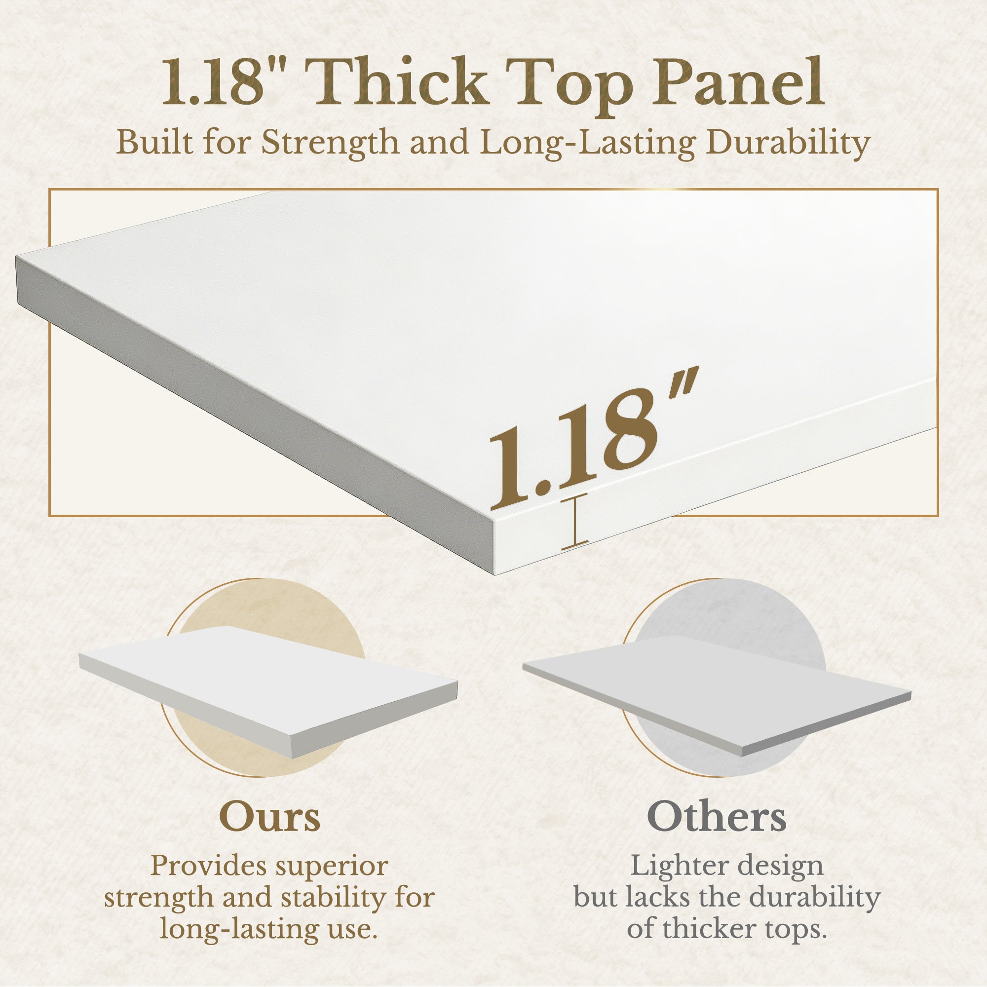- 1.18" thick top panel: stronger, more stable surface for heavy office gear.