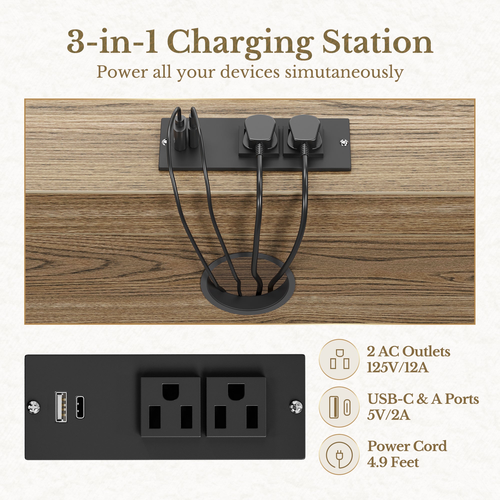 - Make Charging Convenient: Designed with a convenient built-in power outlet on the top surface, including 2 standard outlets, 1 Type C and 1 USB port plus a 6.5-foot power cord can be used to charge your printer, computer, phones and other office equipment duting work or study.