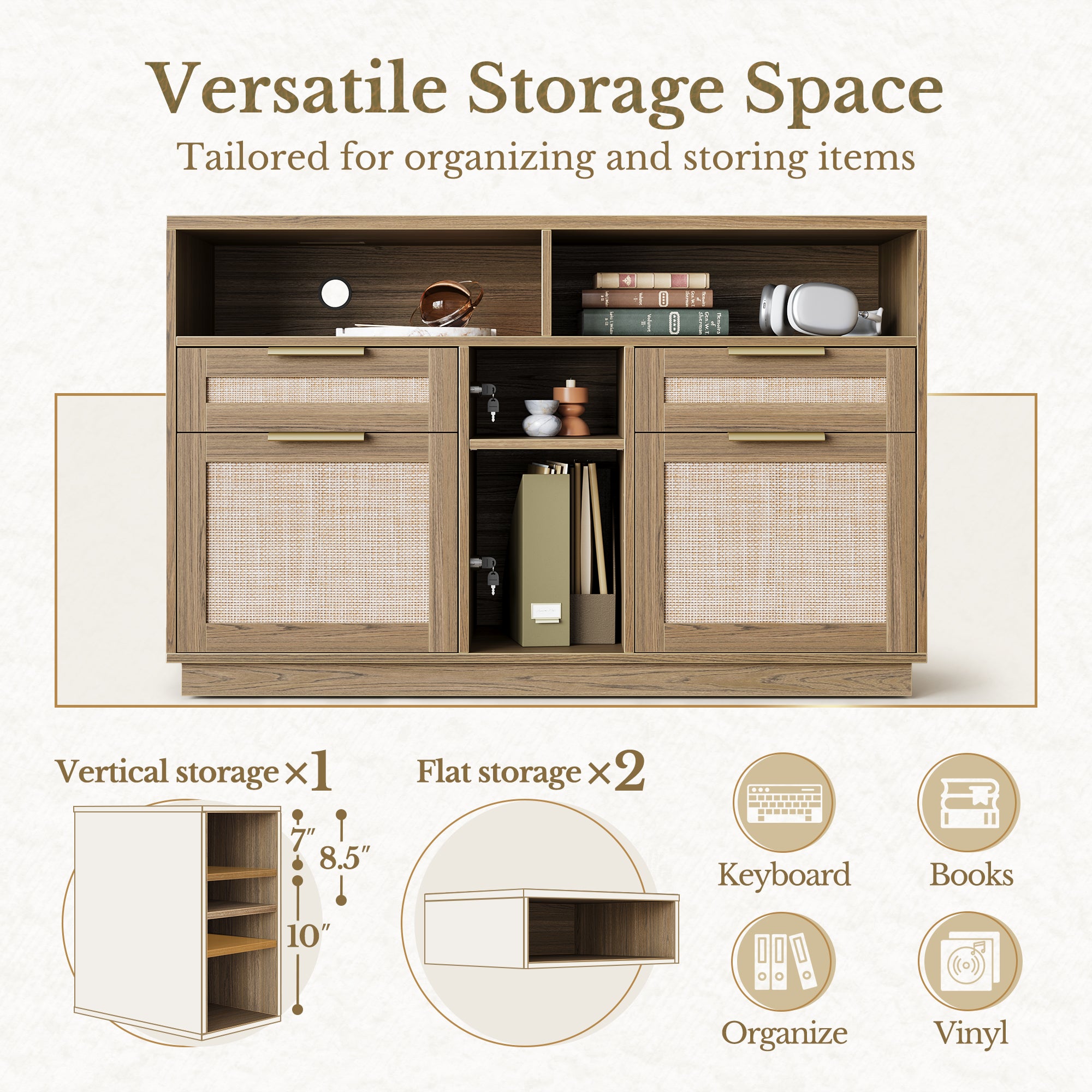 - Ample Storage Space: Our file cabinet features 4 drawers with different size, Two bottom file drawers accommodates legal/letter/A4 Sized documents, Left Drawers with locks secure important documents and protect the privacy of your business. Two smaller drawers for office essentials, open shelves are perfect to store books, or display decorative items, the spacious countertop design can support printers, scanners and other equipment, keep your workspace organized.
