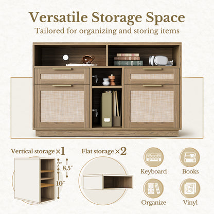- Multifunctional File Cabinet: This file cabinet designs with 4 drawers and open shelves, which provide you with sufficent space to store office documents, books and paper. A built-in power outlet to keep your devices charged. Its clean, modern design seamlessly blends into both professional office and home study setups.