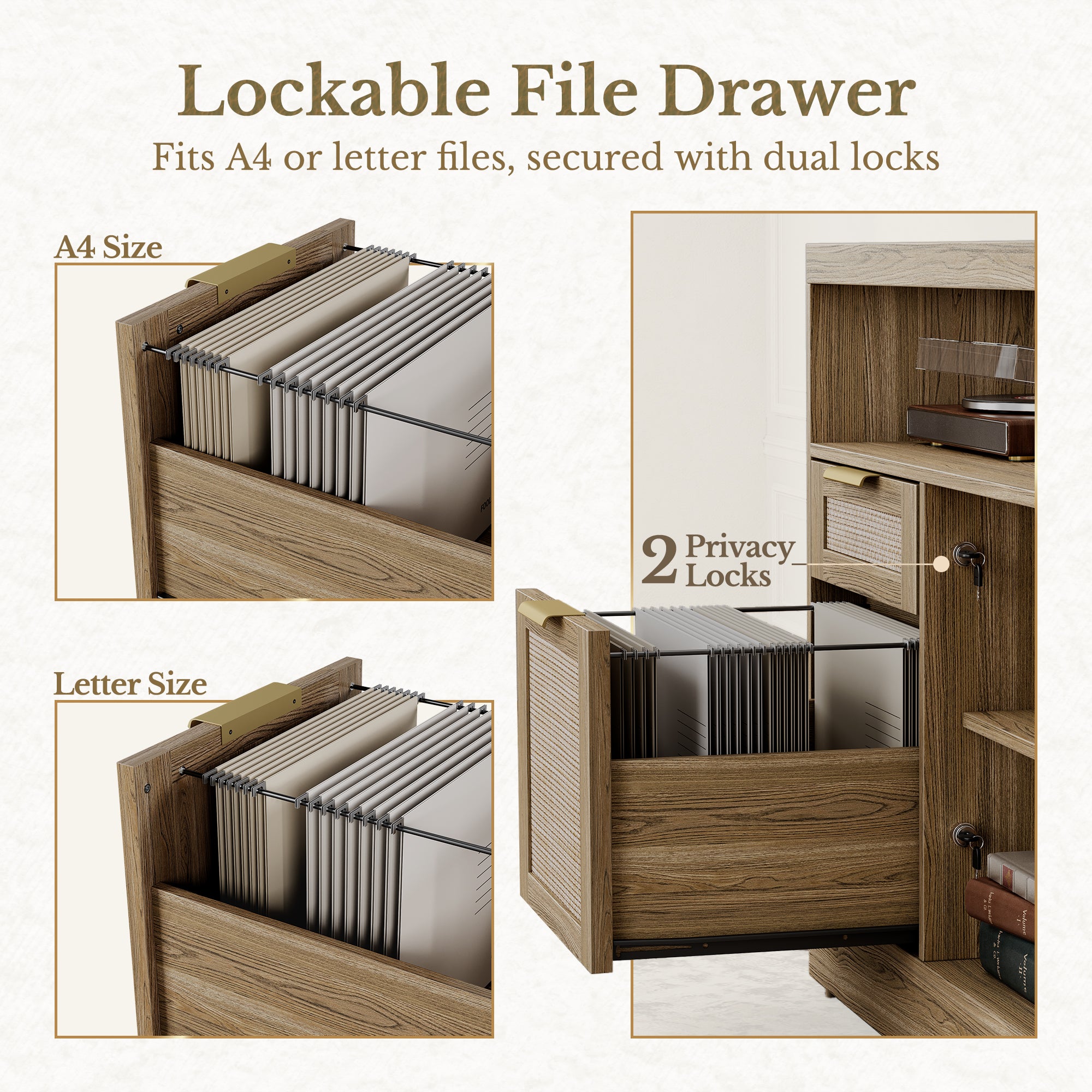 - Multifunctional storage space:Perledesign file cabinets with versatile storage for your everyday items—pens, tools, books, or decor. There’s plenty of room for a printer or speaker, and drawers feature dual-format file rails that fit both A4 and Letter-size files with ease.