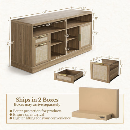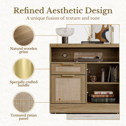 Compatible Letter and A4 Size, Fluted Filing Cabinet for Home Office with AC/USB, Adjustable Storage Shelves, Light Walnut