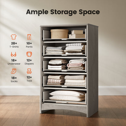 - Smart Storage, Space-Efficient Design: Featuring five roomy drawers, this tall chest provides abundant storage for clothing, linens, or accessories while keeping a slim, space-saving shape. Perfect for small bedrooms, nurseries, apartments, or entryways.