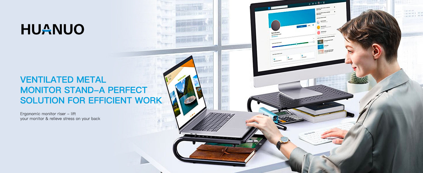 - EASY ASSEMBLY: This metal monitor stand HNLL2 is very easy to install. You just need take 2 minutes to connect two legs with the platform. The monitor stand can be used as laptop shelf, computer stand and printer stand.