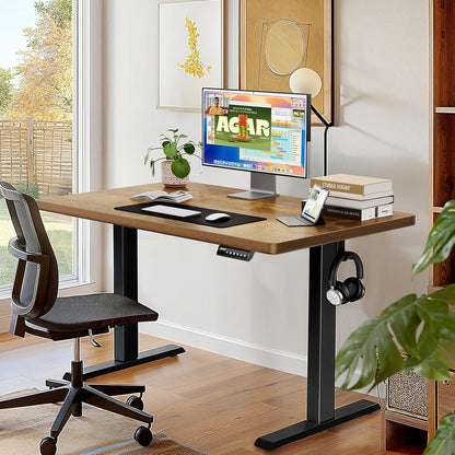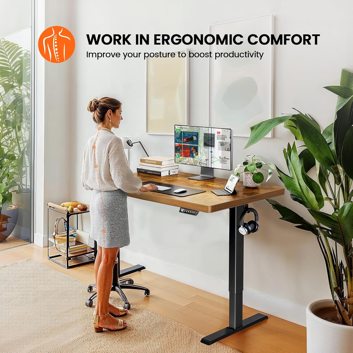 - 【Electric Height Adjustable】Our electric standing desk features four preset buttons to customize the height, offering smooth transition positions ranging height range from 27.9″ to 46.8″ tall, enjoy improved ergonomic posture and avoid discomfort caused by prolonged sitting throughout your workday.