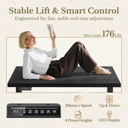 ▸ Effortless Height Adjustment: The smooth electric lift system allows seamless height changes between 28.9"–47.1". An LED display and 4 programmable presets let you switch between sitting and standing with one touch.