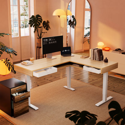 63" Electric L Shaped Standing Desk With 2 Under Desk Drawers