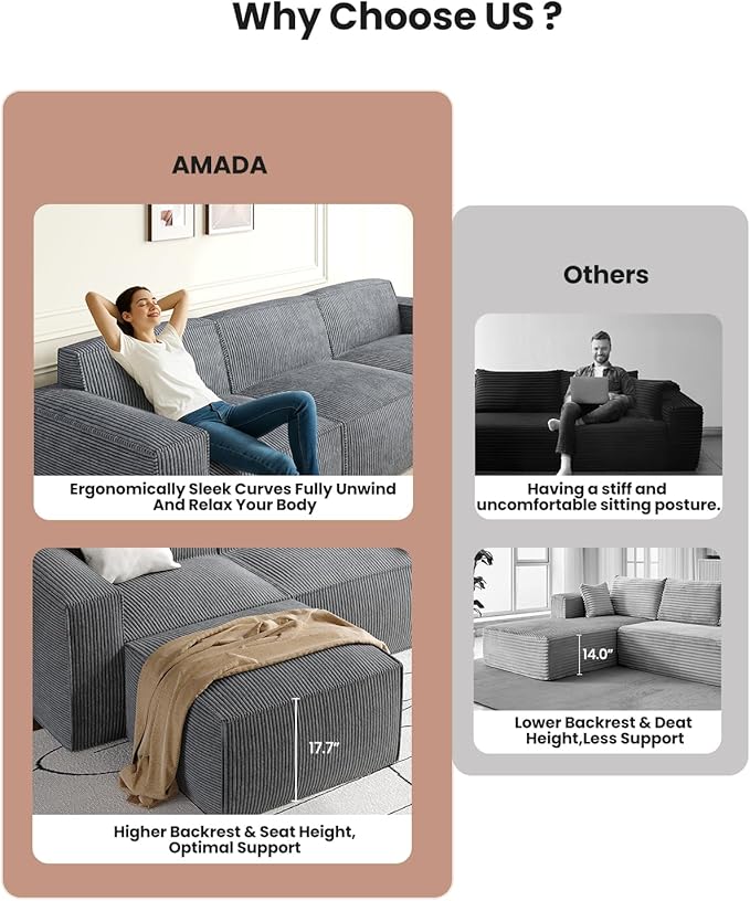 Soft corduroy fabric, deep seating comfort, and tool-free setupโthis modular sectional sofa transforms any space with cozy, customizable elegance.