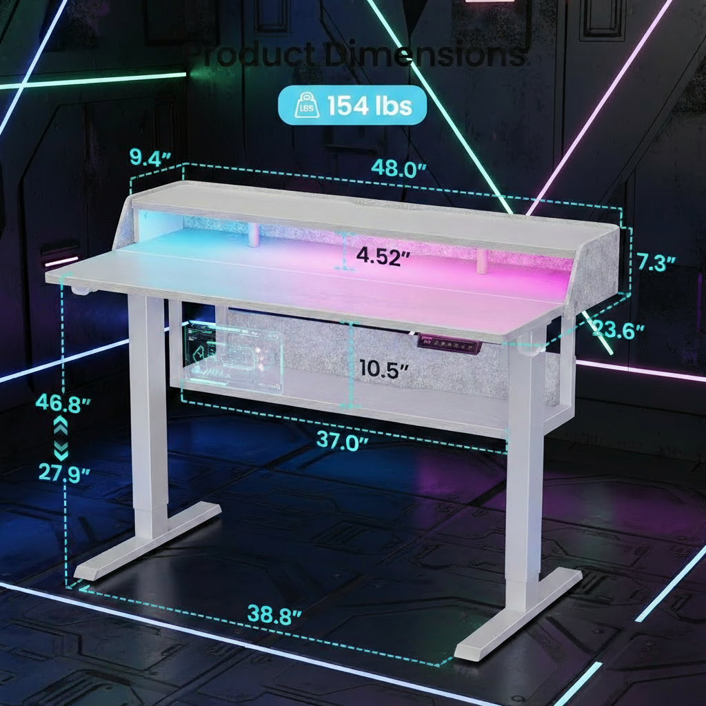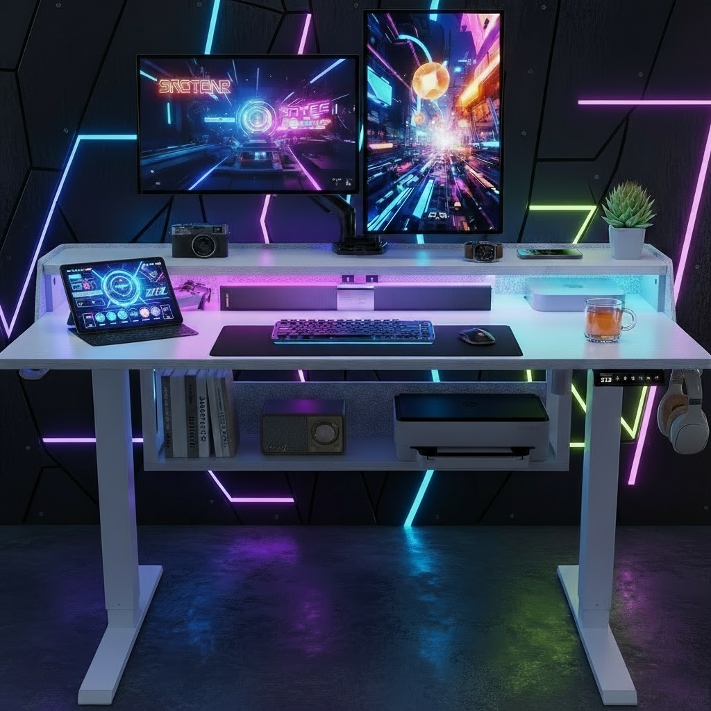 Smart RGB Standing Desk with Customizable Lighting & Ergonomic Design