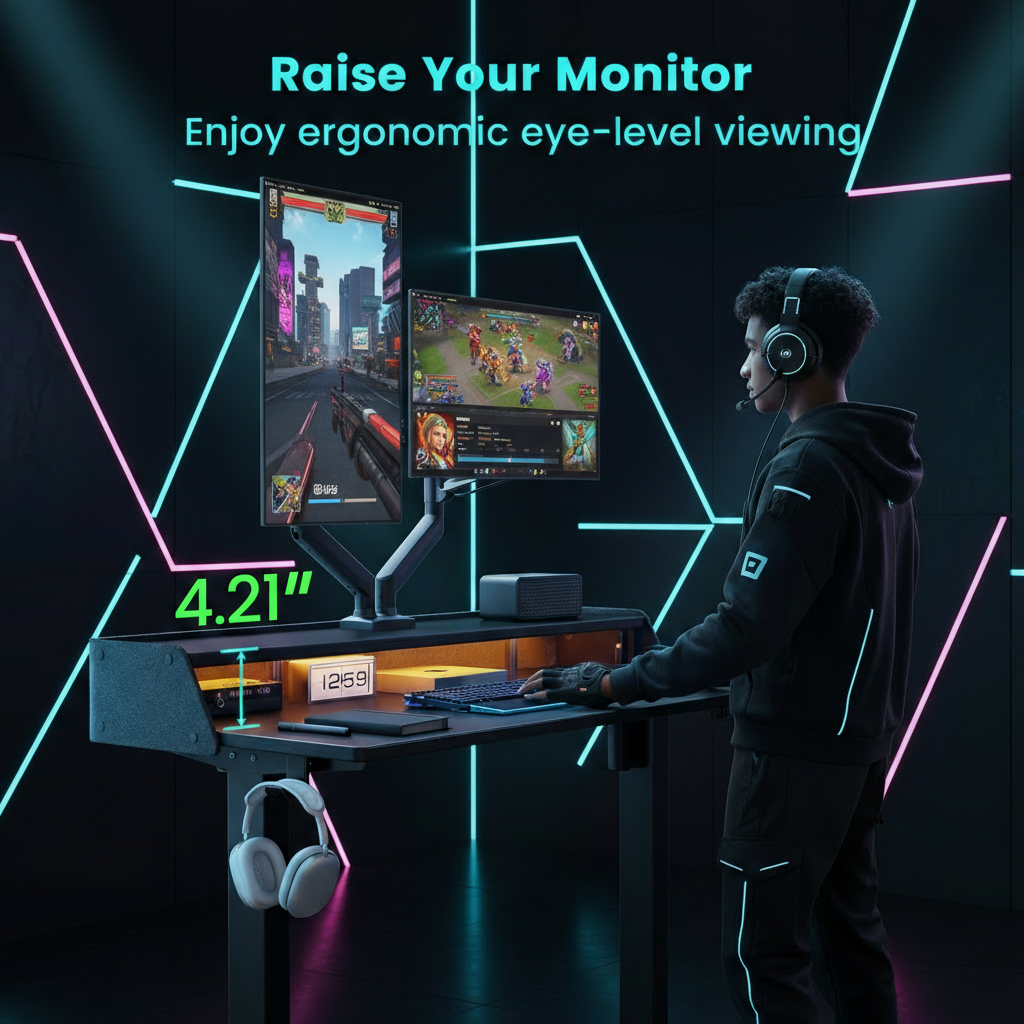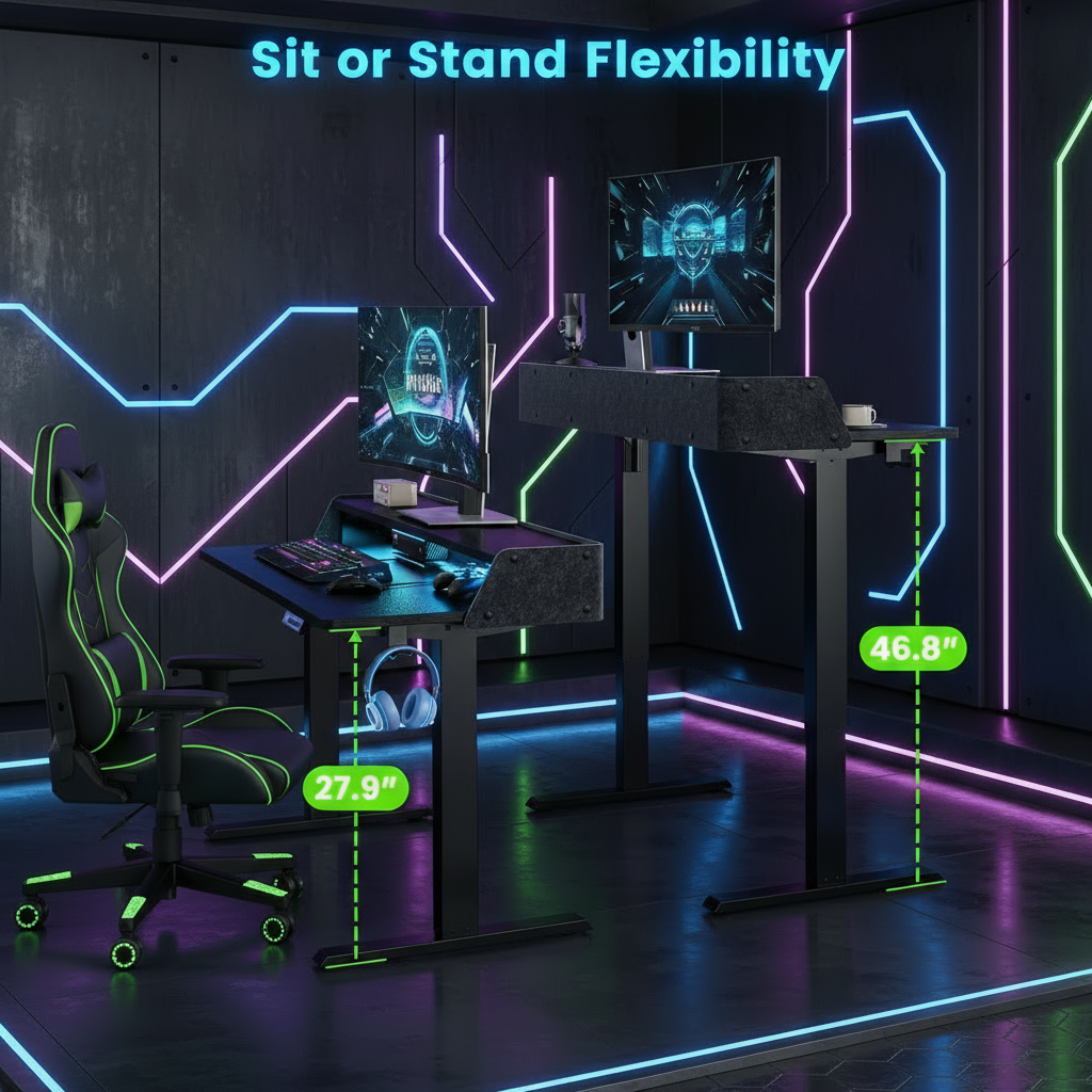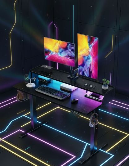 Upgrade your workspace with our Electric Standing Desk, designed to easily declutter your desktop while offering smooth height adjustment for ergonomic comfort. The clamp-on dual-arm display stand keeps your monitors, laptop, or accessories neatly organized, freeing up valuable desk space. Crafted from durable materials with a sleek modern design, this desk combines functionality and style—perfect for home offices, gaming setups, or creative studios. Boost productivity, reduce clutter, and work smarter!