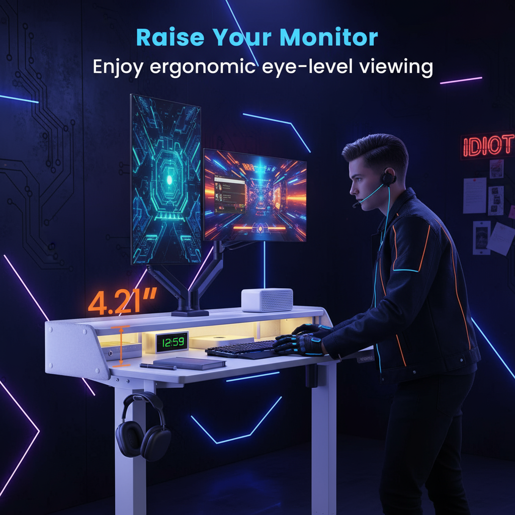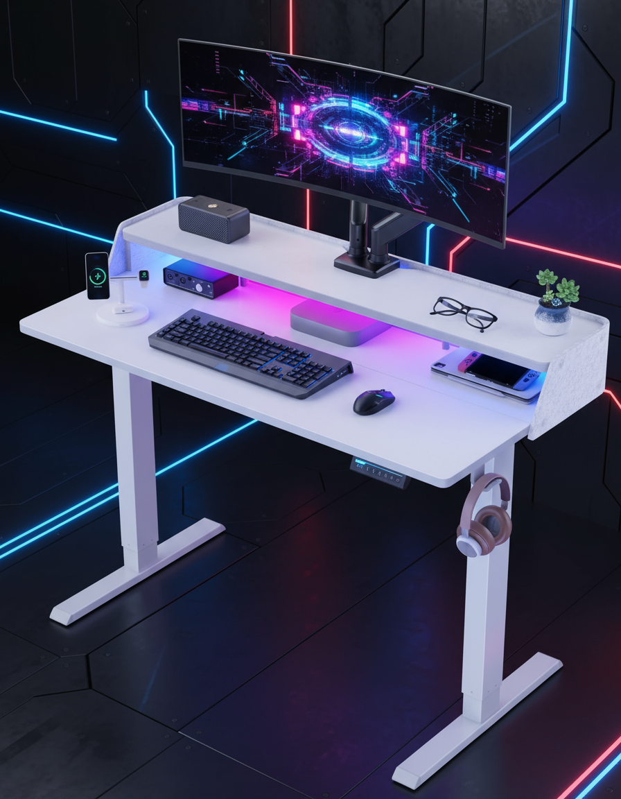 Upgrade your workspace with our Electric Standing Desk, designed to easily declutter your desktop while offering smooth height adjustment for ergonomic comfort. The clamp-on dual-arm display stand keeps your monitors, laptop, or accessories neatly organized, freeing up valuable desk space. Crafted from durable materials with a sleek modern design, this desk combines functionality and style—perfect for home offices, gaming setups, or creative studios. Boost productivity, reduce clutter, and work smarter!