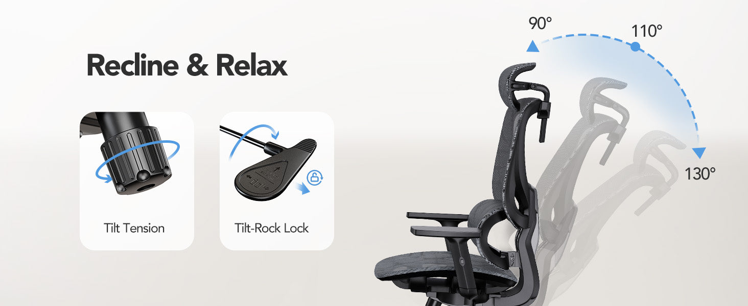 5-Level Adjustable Ergonomic Chair with Lift-to-Unlock Height & Custom Lumbar Support