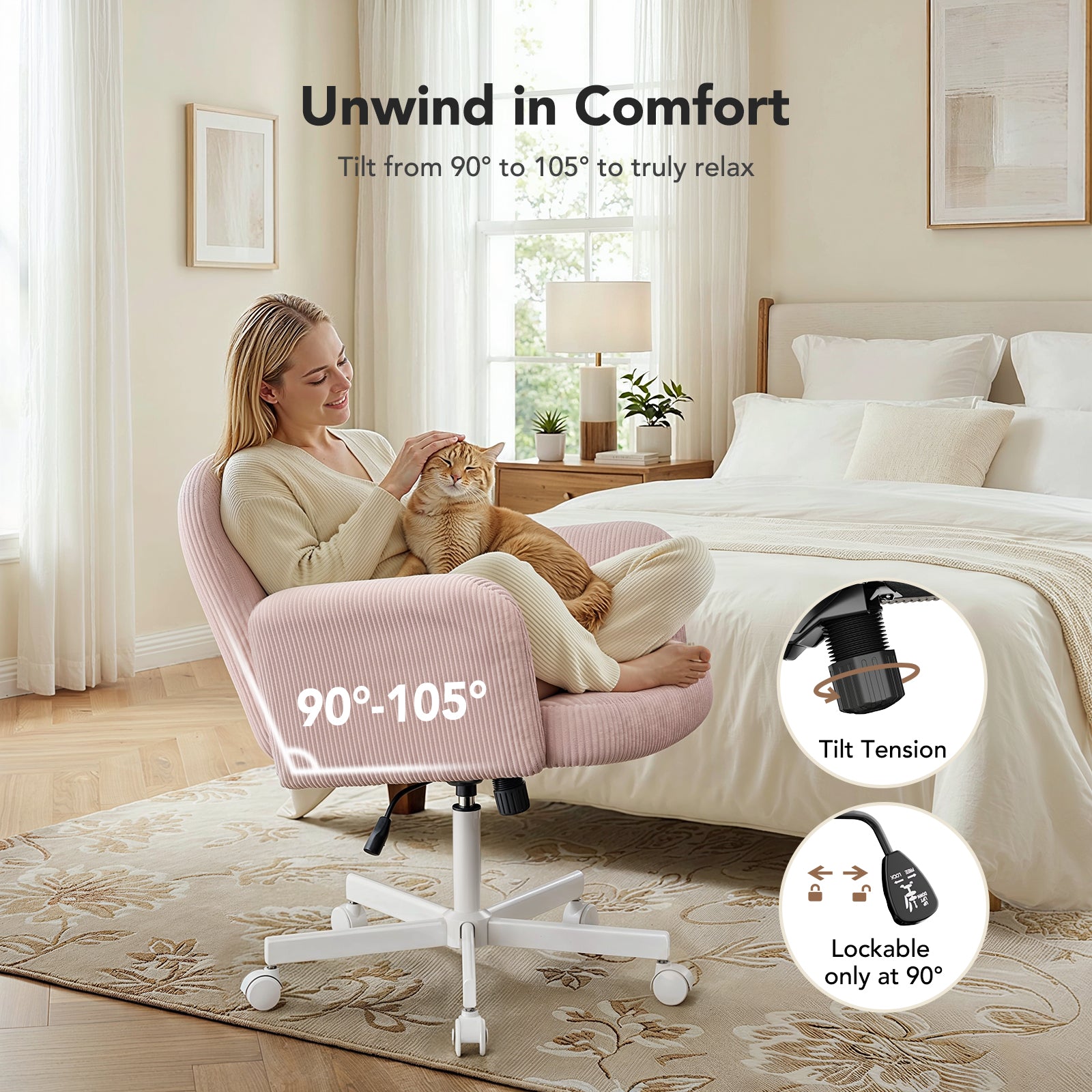 Tailor your seating experience with a smooth height adjustment (16.7"-20.5") and a relaxing 90° to 105° tilt function. Whether you're working at a vanity or relaxing in the bedroom, the tilt tension control lets you find your perfect "unwind" angle.