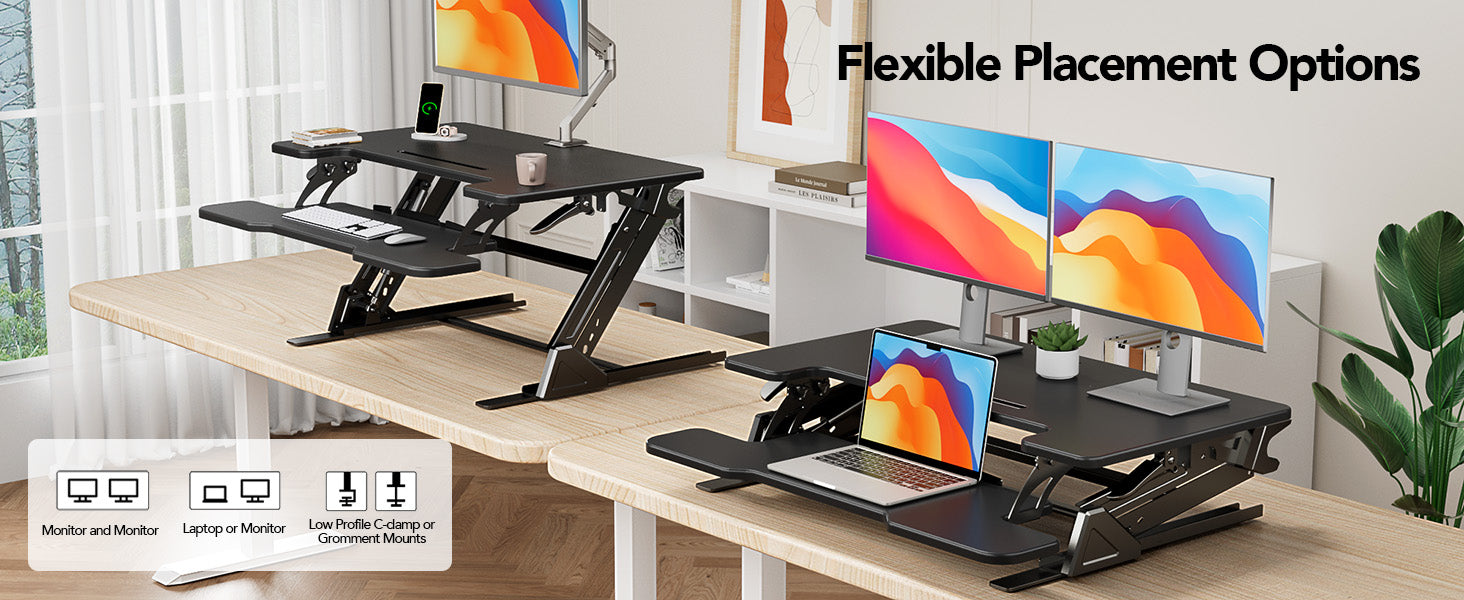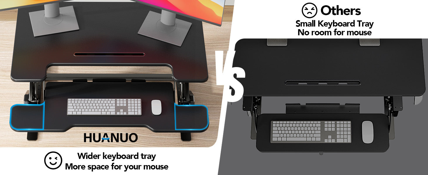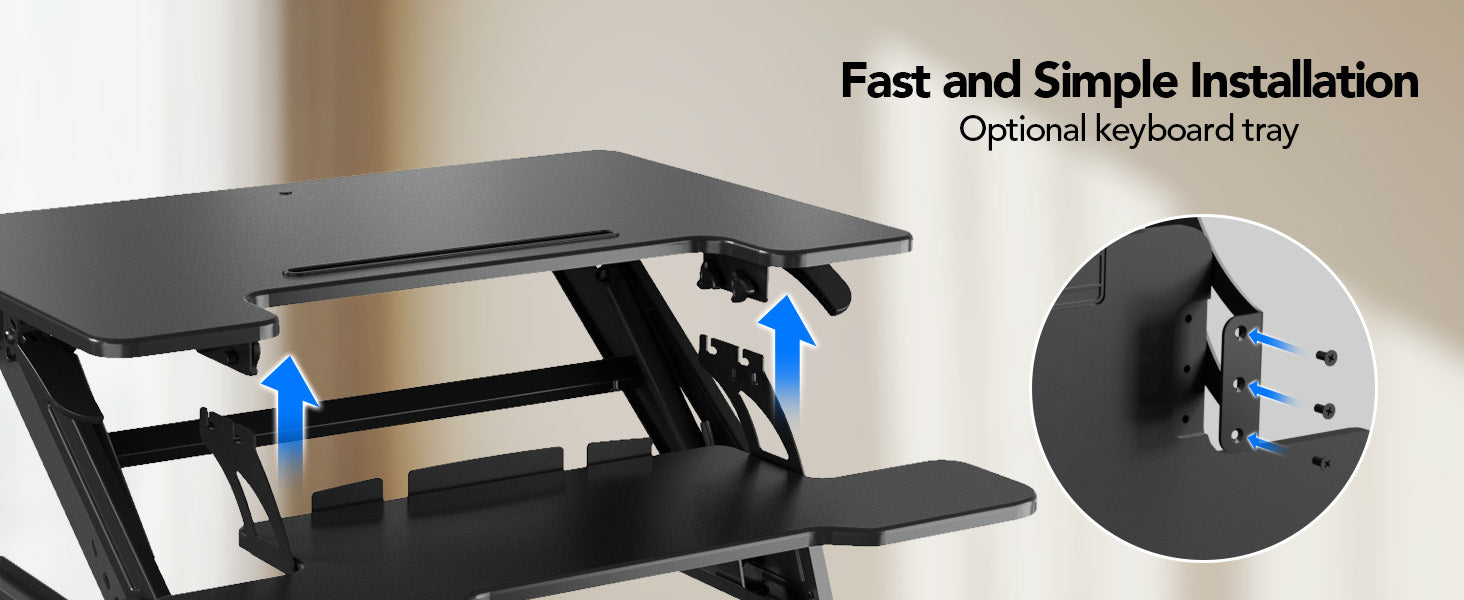 - Hassle-Free Setup: This stand up desk is almost ready to use right out of the box. Simply unpack, place it on your desk, install the keyboard tray, and start using. This riser is a great gift for yourself or anyone working from home who needs a more comfortable, flexible workspace.