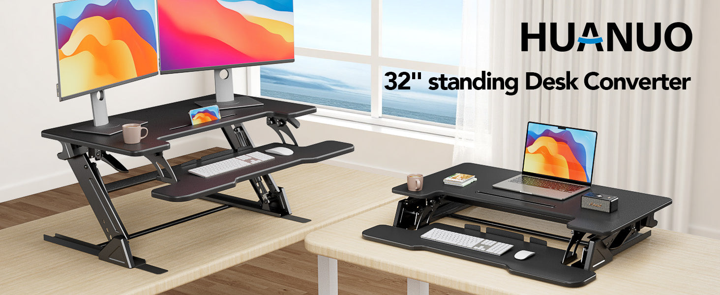 - Designed for Dynamic Work: Work the way you choose to with the HUANUO standing desk converter. It instantly converts any desk into a sit-stand workstation, helping you avoid muscle tension and body strain while increasing productivity. The adjustable height range of 5.9" to 17.3" is designed for comfort – sitting or standing.