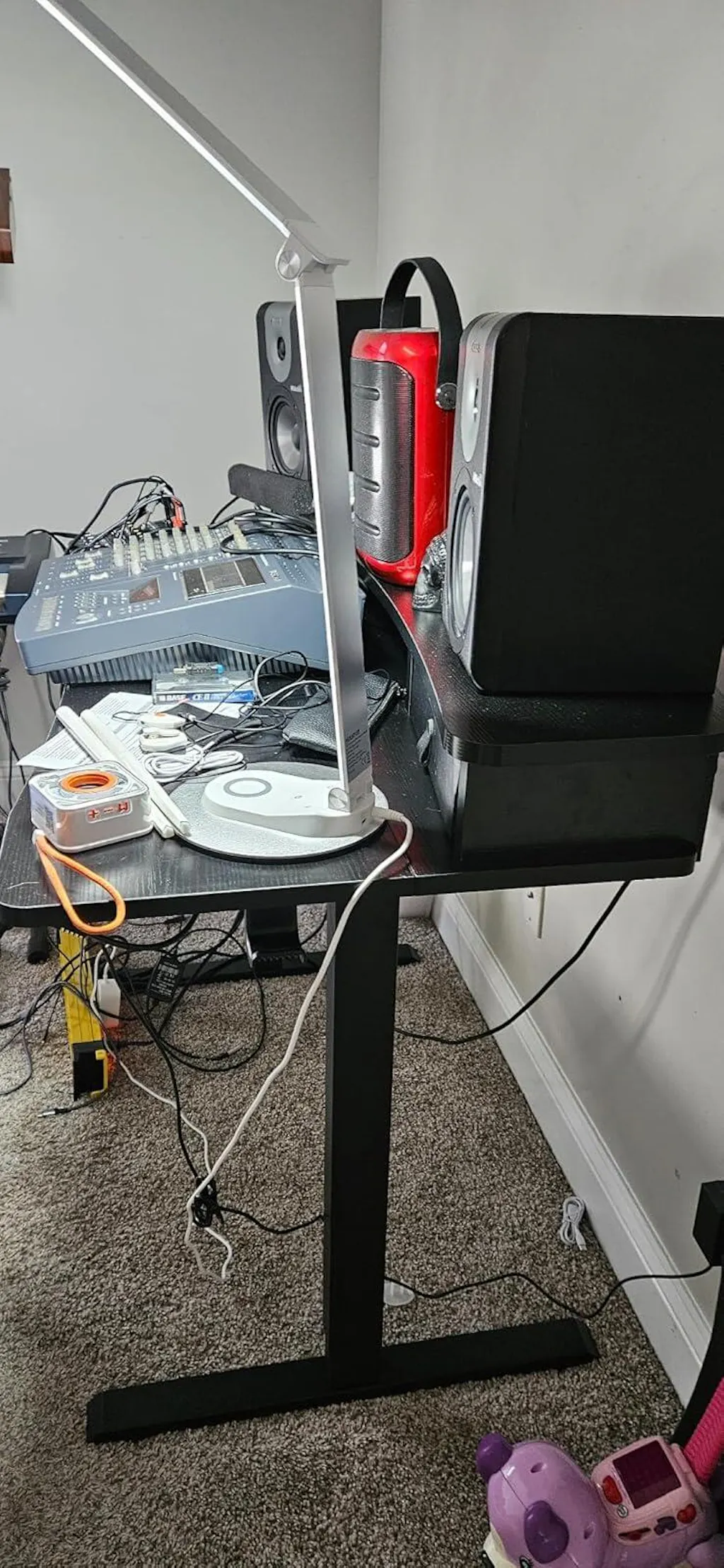 This height-adjustable desk features 4 preset heights, a convenient riser, and storage drawers. C-Clamp mount compatible with 2 side hooks, it’s the perfect addition to any home office or workspace.