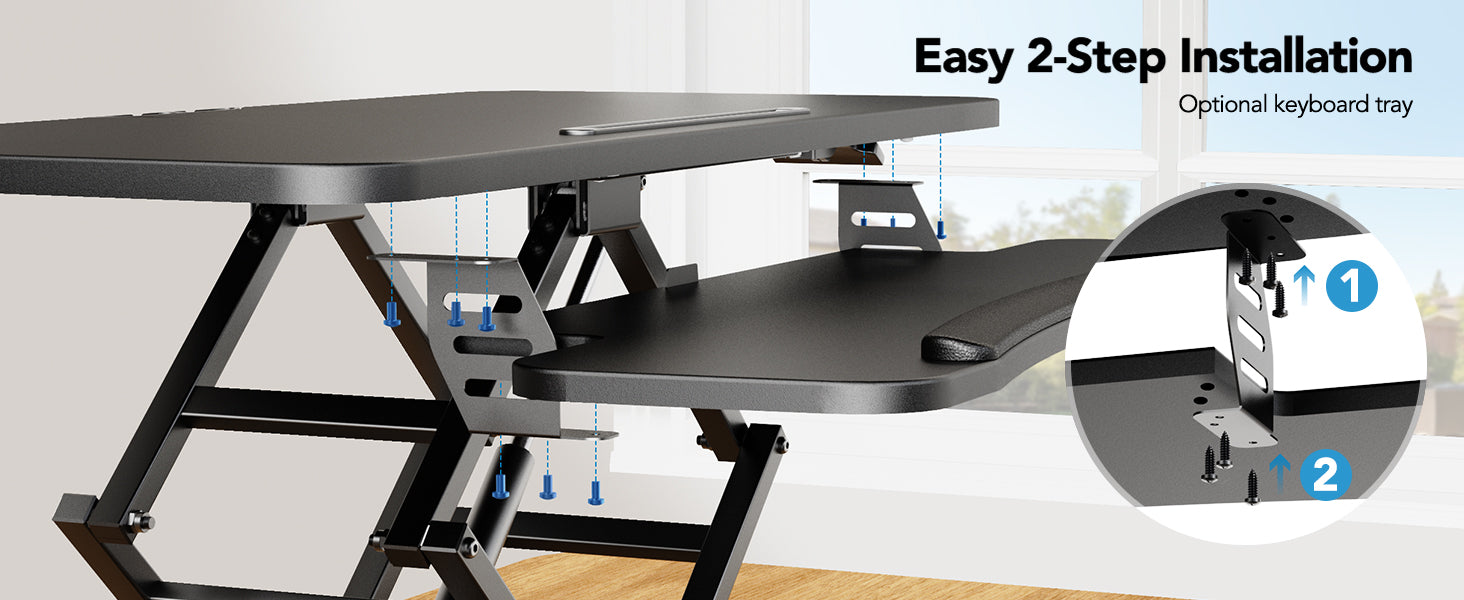 - Pre-assembled frame and top: This standing desk is almost ready to use right out of the box. Simply unpack, place the desk on the table, install the keyboard tray and wrist pad (optional), and start arranging a neat desktop. It makes a great gift for yourself, friends, and family members who work from home.