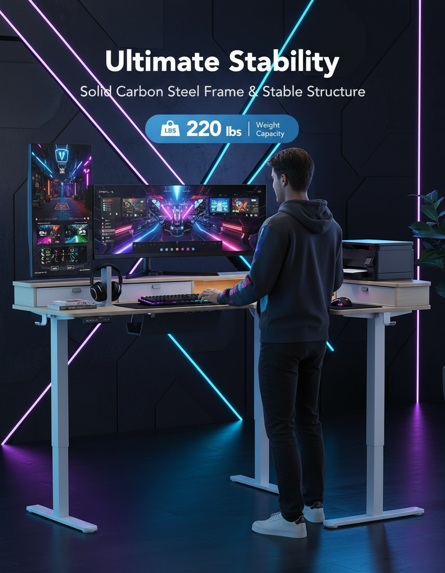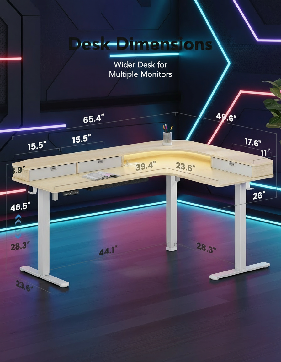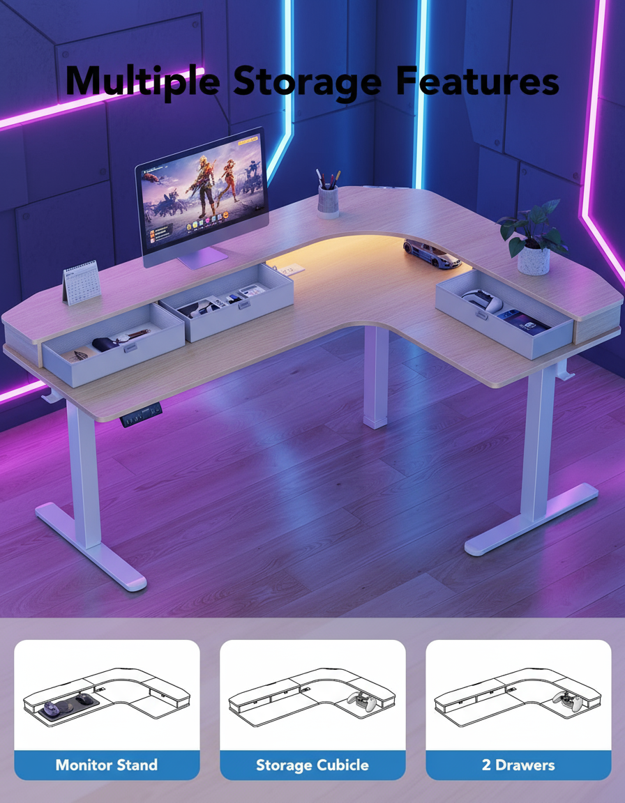 Whether you're working from home or upgrading your office, this L-shaped standing desk offers the perfect balance of ergonomics, space efficiency, and style.