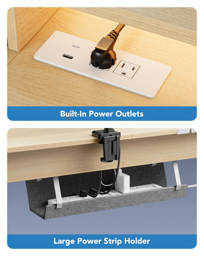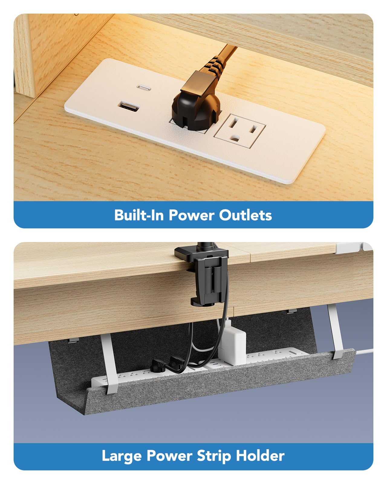 Customize your comfort with programmable height presets and. Built-in cable management trays help maintain a clutter-free desktop, while the premium wooden finish blends modern functionality with a sleek, professional look.