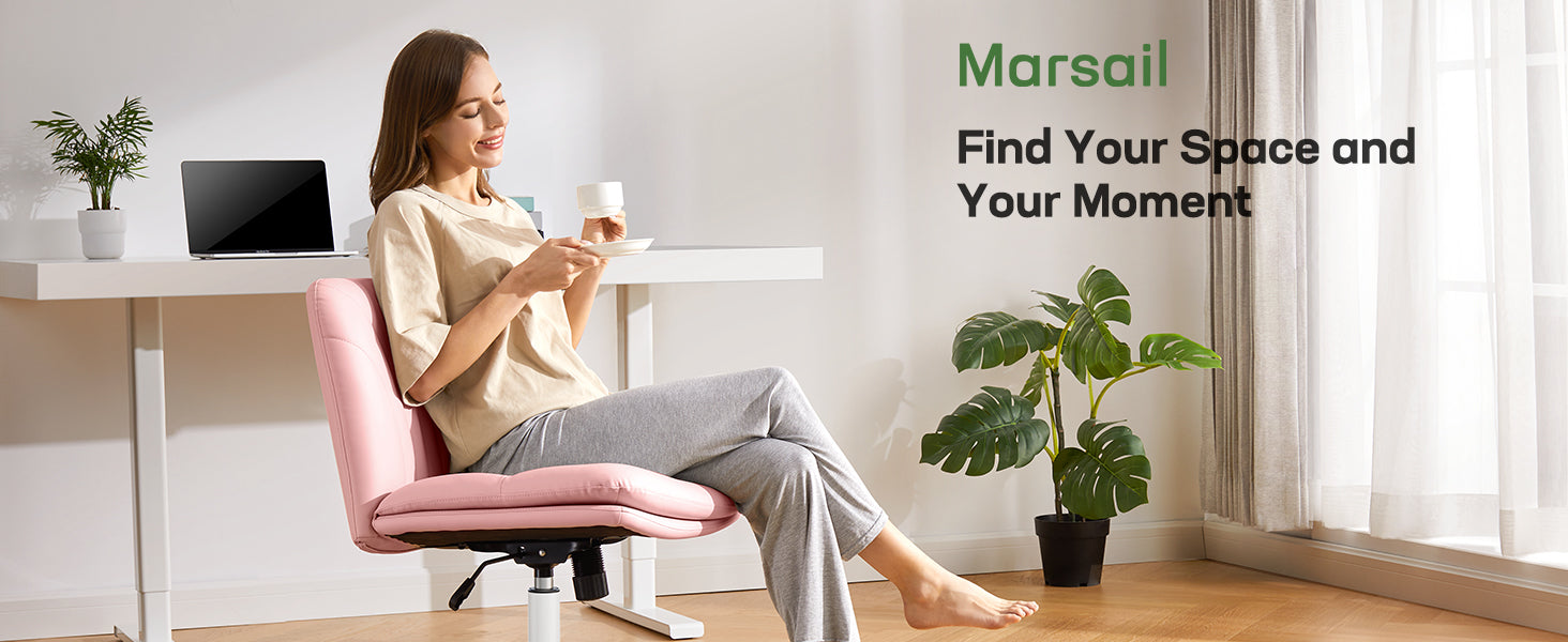 Rest assured on our cross legged office chair is sturdy engineered wood seat base that ensures stability. The two-layer memory foam cushion offers a soft upper surface and firm sub-layer support for enhanced comfort during long hours of sitting. With a generous 27.56" steel base, this office chair armless guarantees stability, allowing you to focus on your tasks in a relaxed manner.