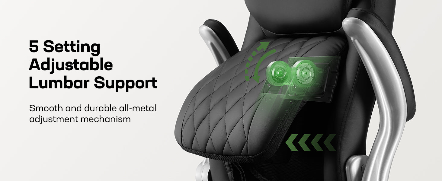 5-Position Adjustable Lumbar Support - Precision All-Metal Mechanism for Custom Comfort