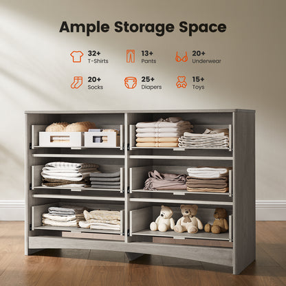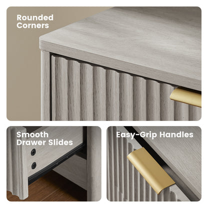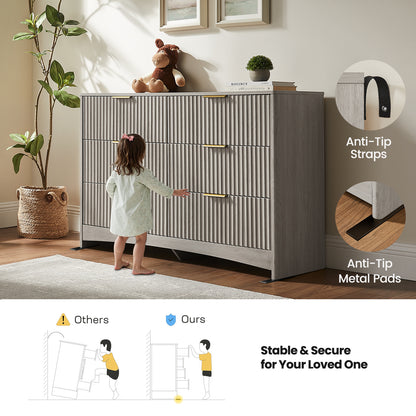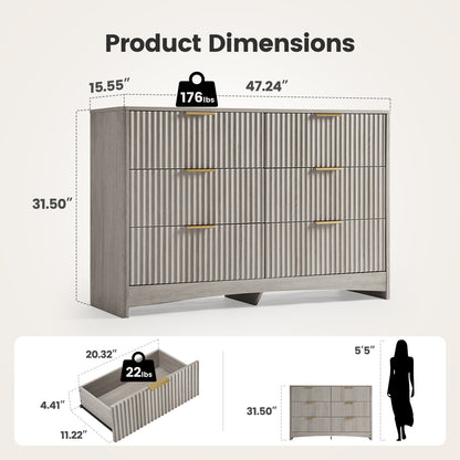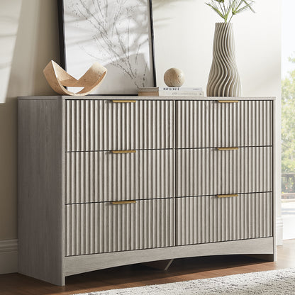 Modern 6 Drawer Dresser, Fluted Wood Chest of Drawers with Rounded Corners, Pre-Installed Drawer Slides, Dresser TV Stand and Storage Organizer for Bedroom, Hallway
