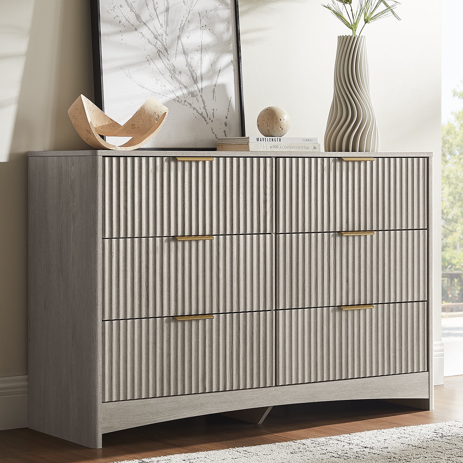 - Elegant Fluted Detailing: Bring modern texture and warmth into your space with this fluted 6 drawer dresser. Featuring wave-textured drawer fronts, smooth metal handles, and a natural oak finish, it’s a stylish centerpiece for bedrooms, living rooms, or hallways.