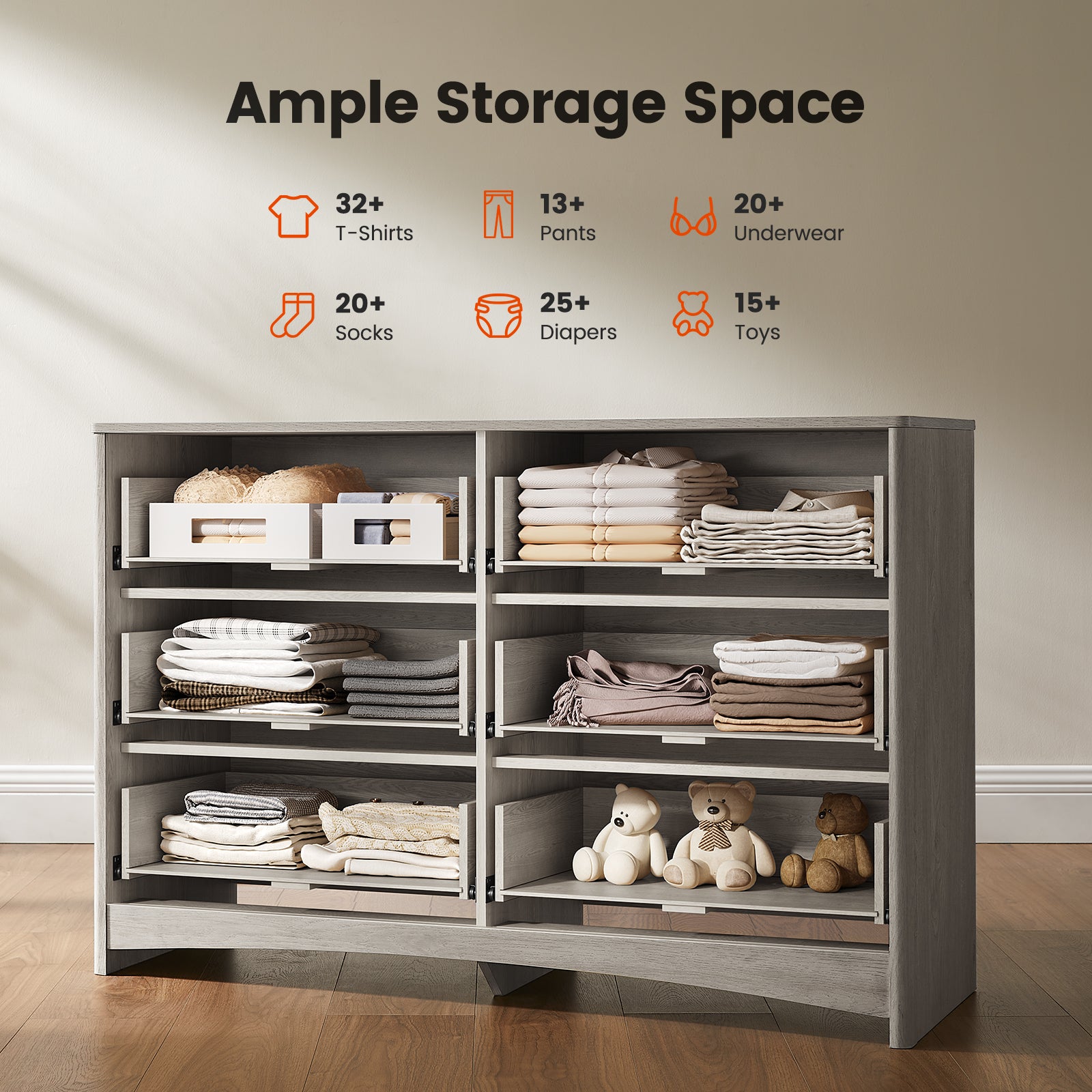 - Strong, Safe, and Family-Friendly: Designed for everyday living, this wood dresser includes an anti-tip kit and reinforced base for enhanced stability. Rounded corners help protect kids and pets, making it a secure storage solution for any home.