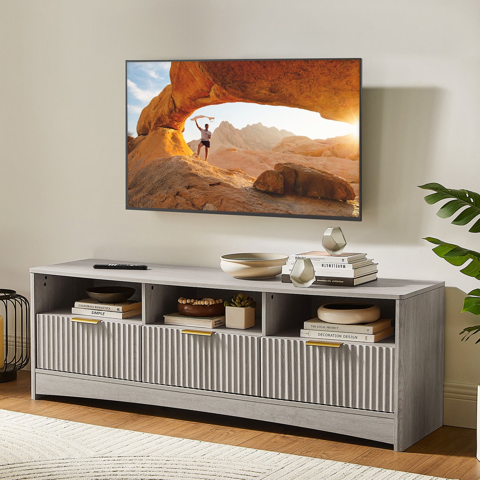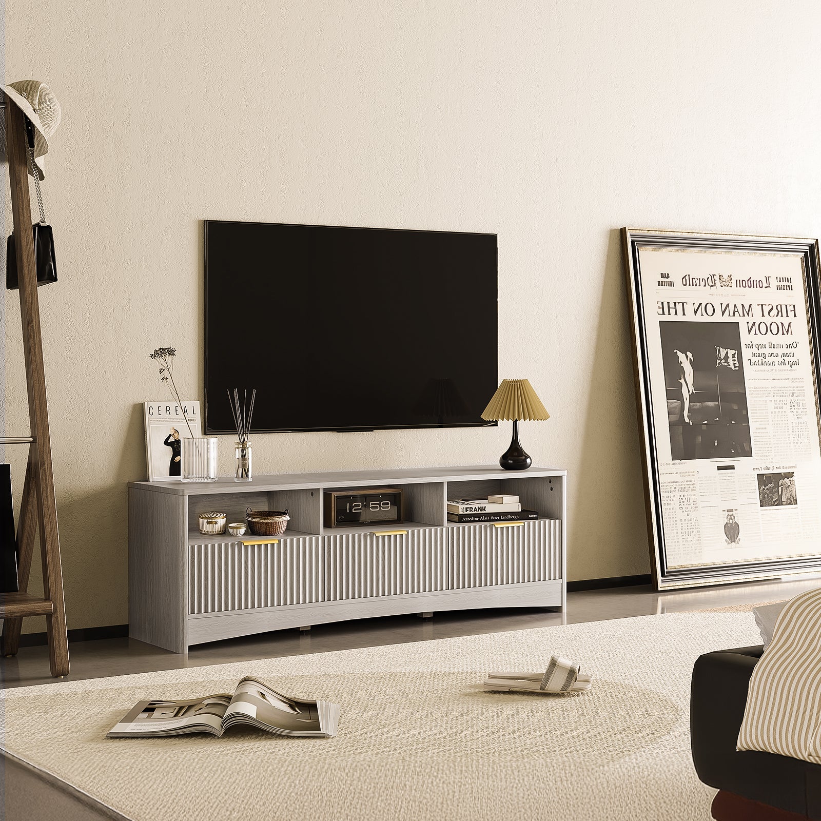 - Fluted Design with Mid-Century Modern Style - Featuring a refined fluted panel front and clean lines, this mid-century modern TV stand brings a stylish, modern touch to any room. Whether used as a TV console, media stand, or entertainment center, it blends seamlessly with modern, minimalist, or natural wood interiors.