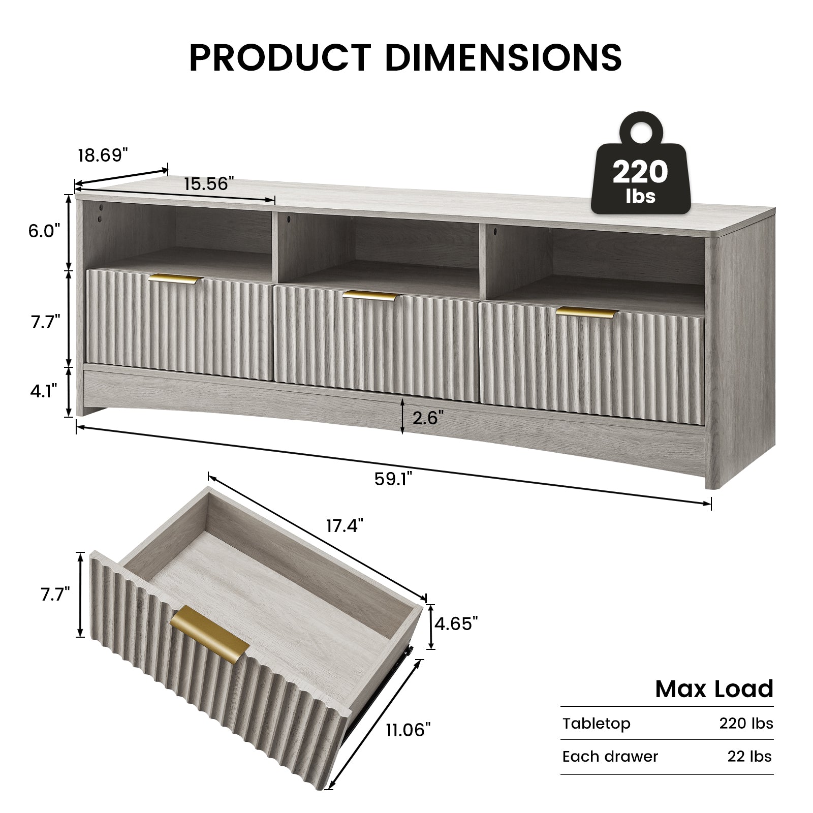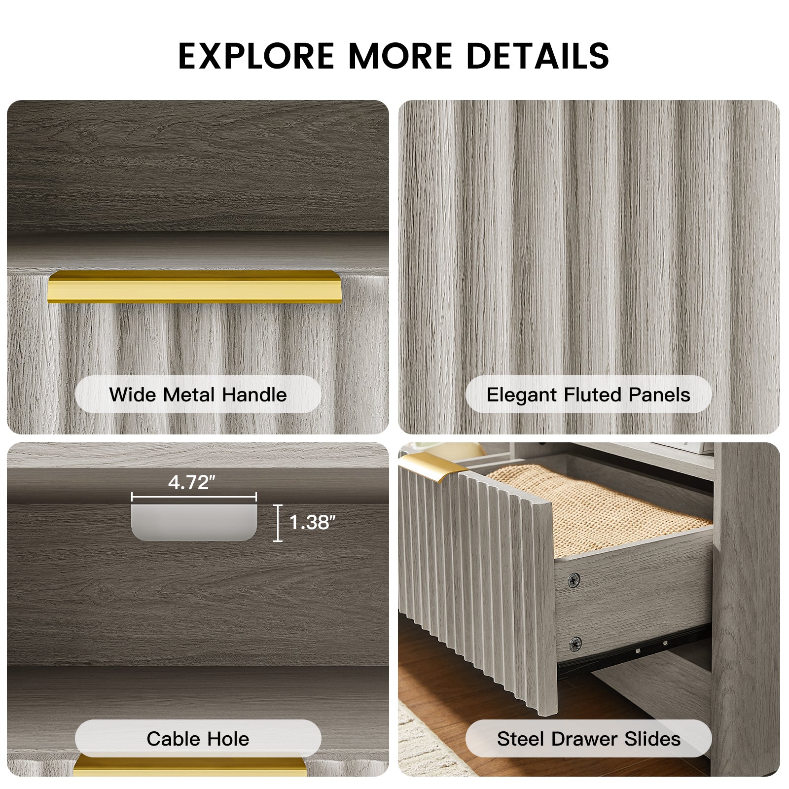 - Thoughtful Details for Everyday Convenience - Designed with usability in mind, this TV stand with drawers features wide metal handles and smooth-glide drawer rails for effortless opening. A built-in cable management hole at the back keeps cords organized and reduces visual clutter around your media setup.