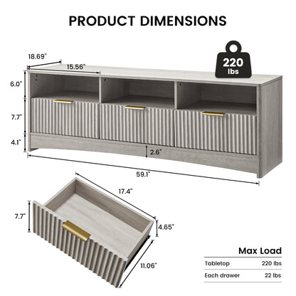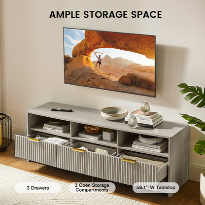 59" Fluted TV Stand for TVs Up to 65", Mid-Century Modern Entertainment Center with Storage Drawers and Open Shelf, TV Console for Living Room or Bedroom