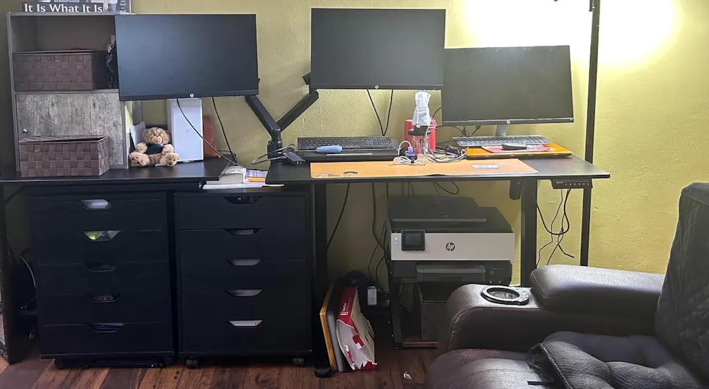 - Dependable Desk: This electric standing desk provides everything you need with a stable structure, reliable adjustable height performance, and handy extra features.