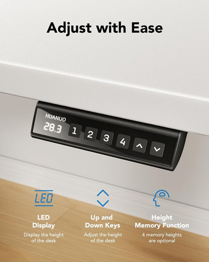 - Dependable Desk: This electric standing desk provides everything you need with a stable structure, reliable adjustable height performance, and handy extra features.